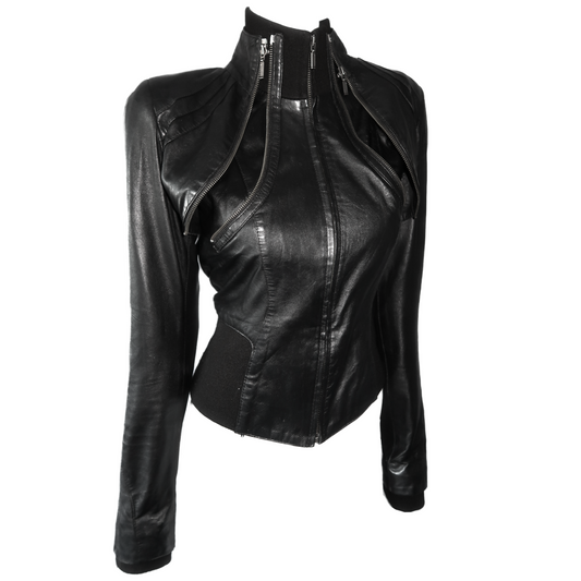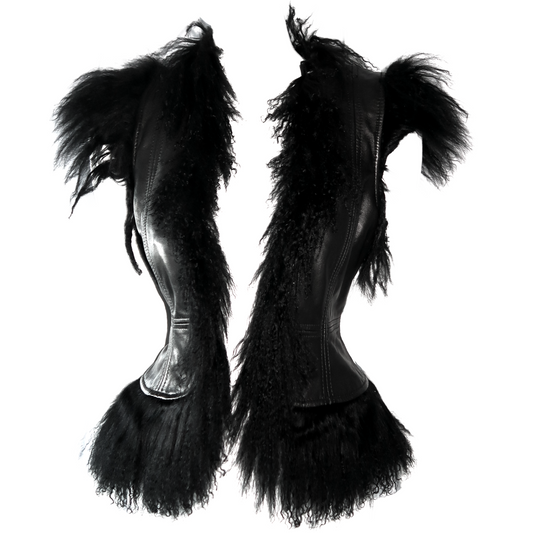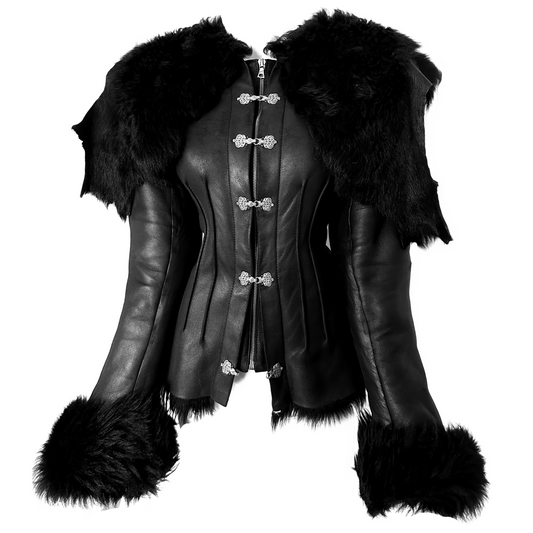 + Vintage gothic leather jacket with fur cape +