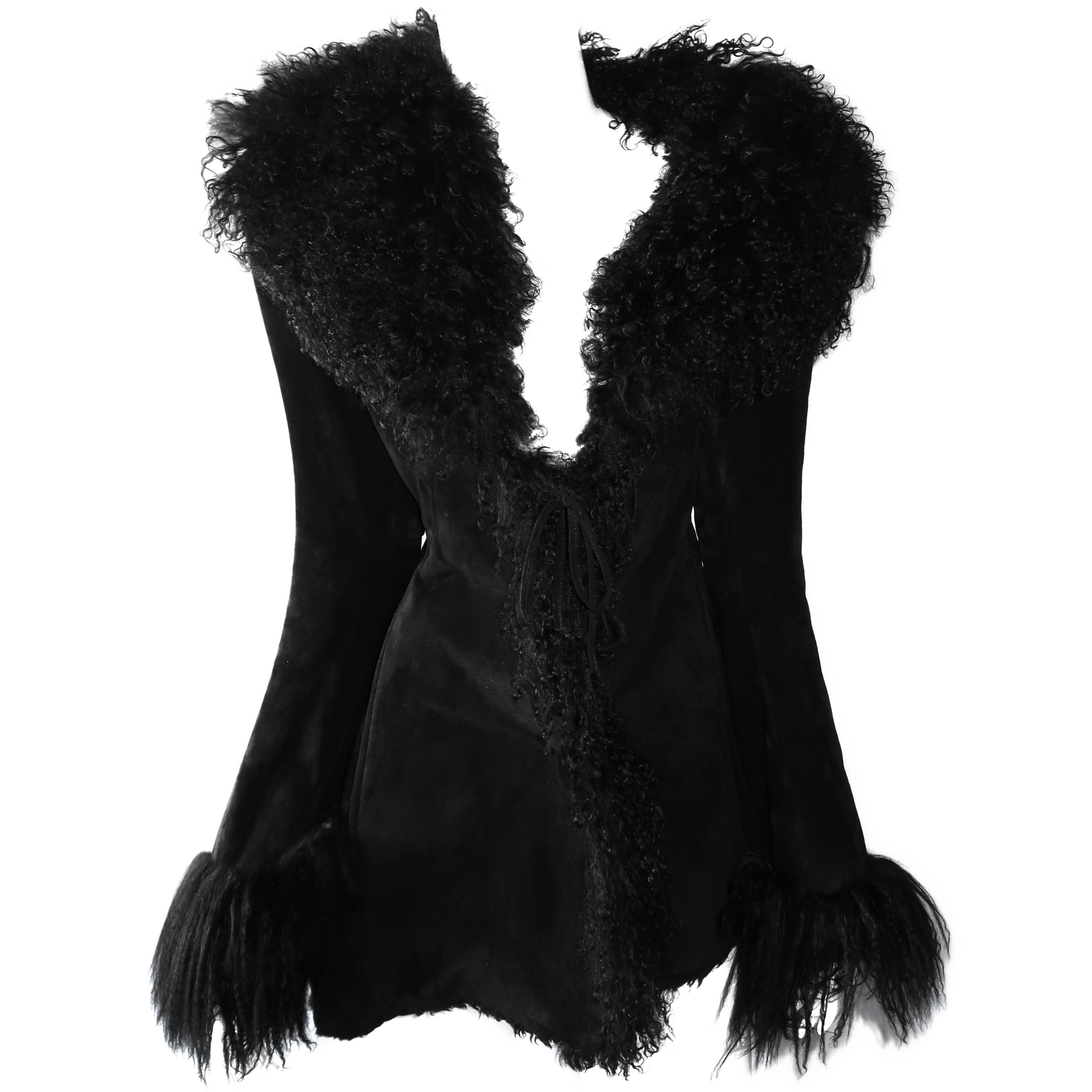Vintage leather Afghan coat with Mongolian lamb curly fur collar