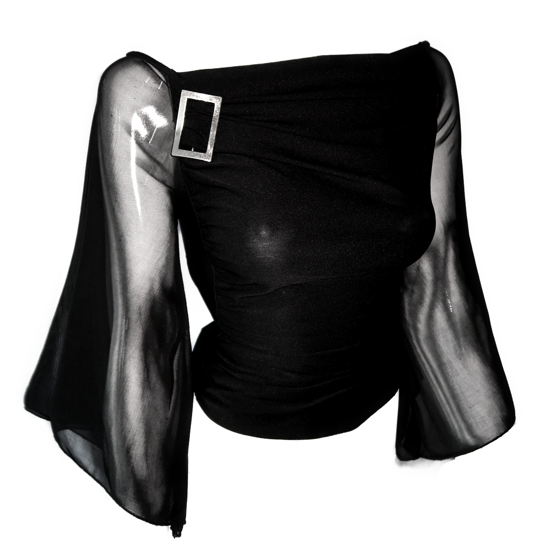 Vintage top with mesh wide 3/4 sleeves and clasp on arm