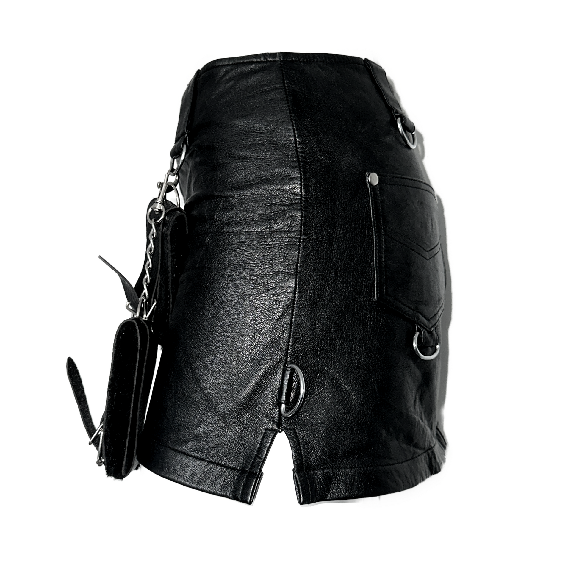 Vintage leather mini moto skirt with silver metal hardware