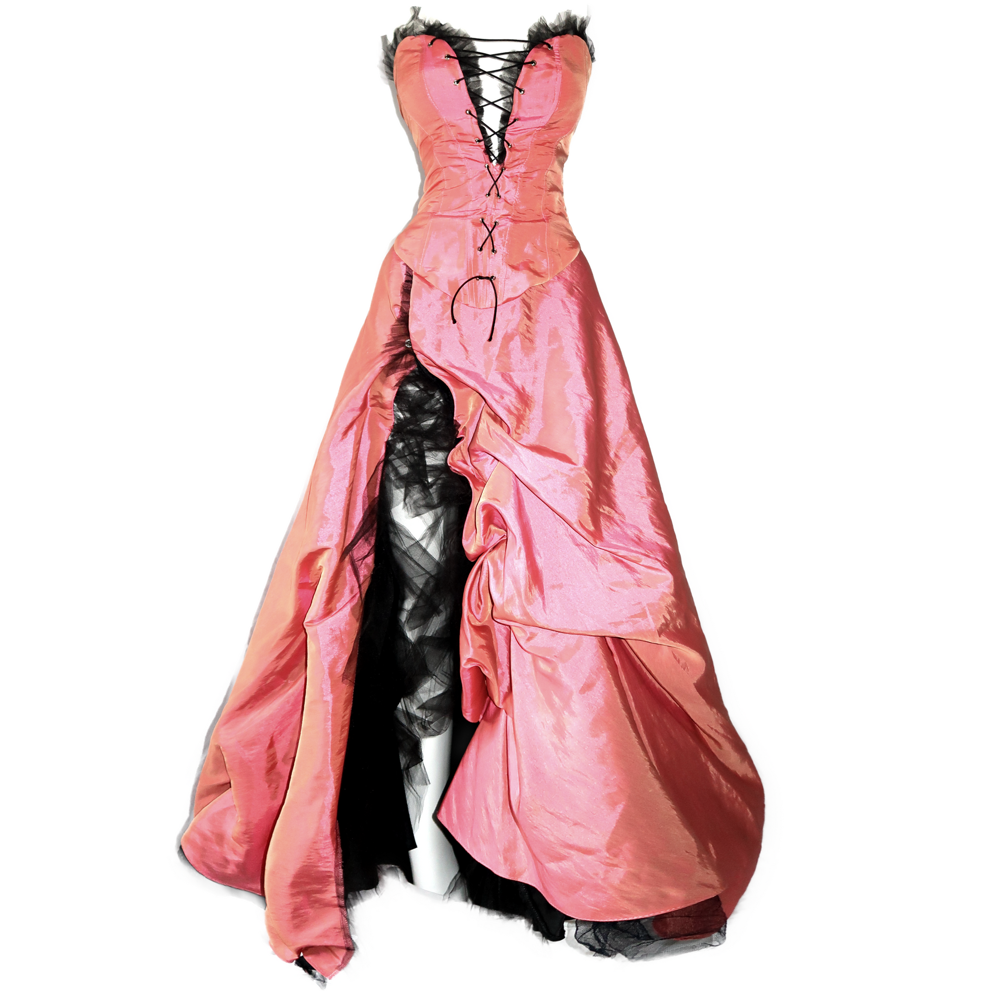 Vintage unique dress set including long ruffled skirt with deep cut out and corset