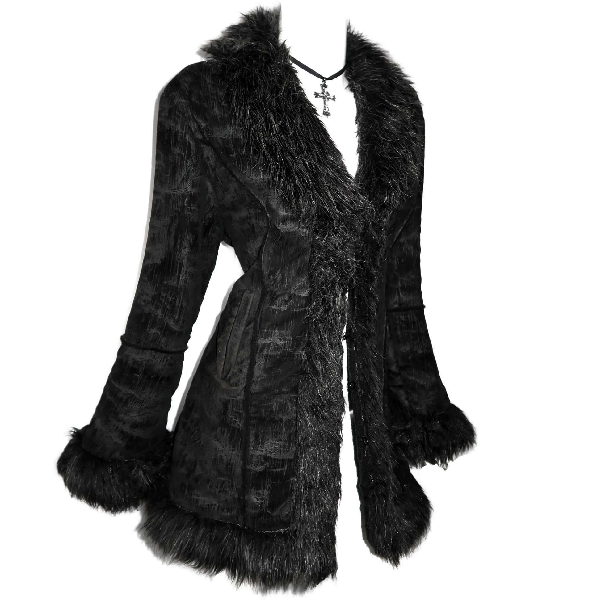 Vintage penny lane style coat with faux fur and washed denim effect
