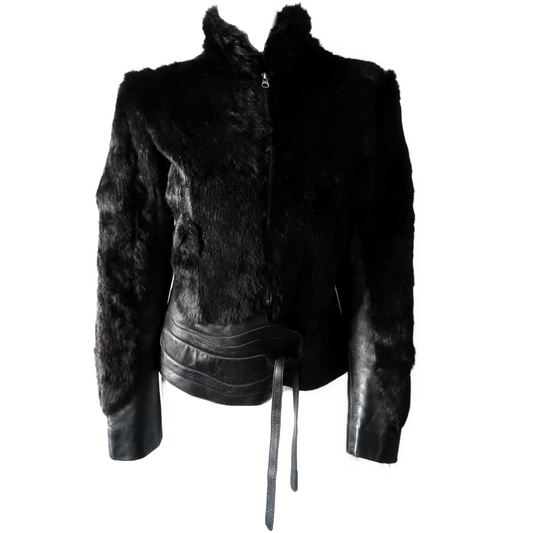 Sold out+ Leather and fur moto jacket +